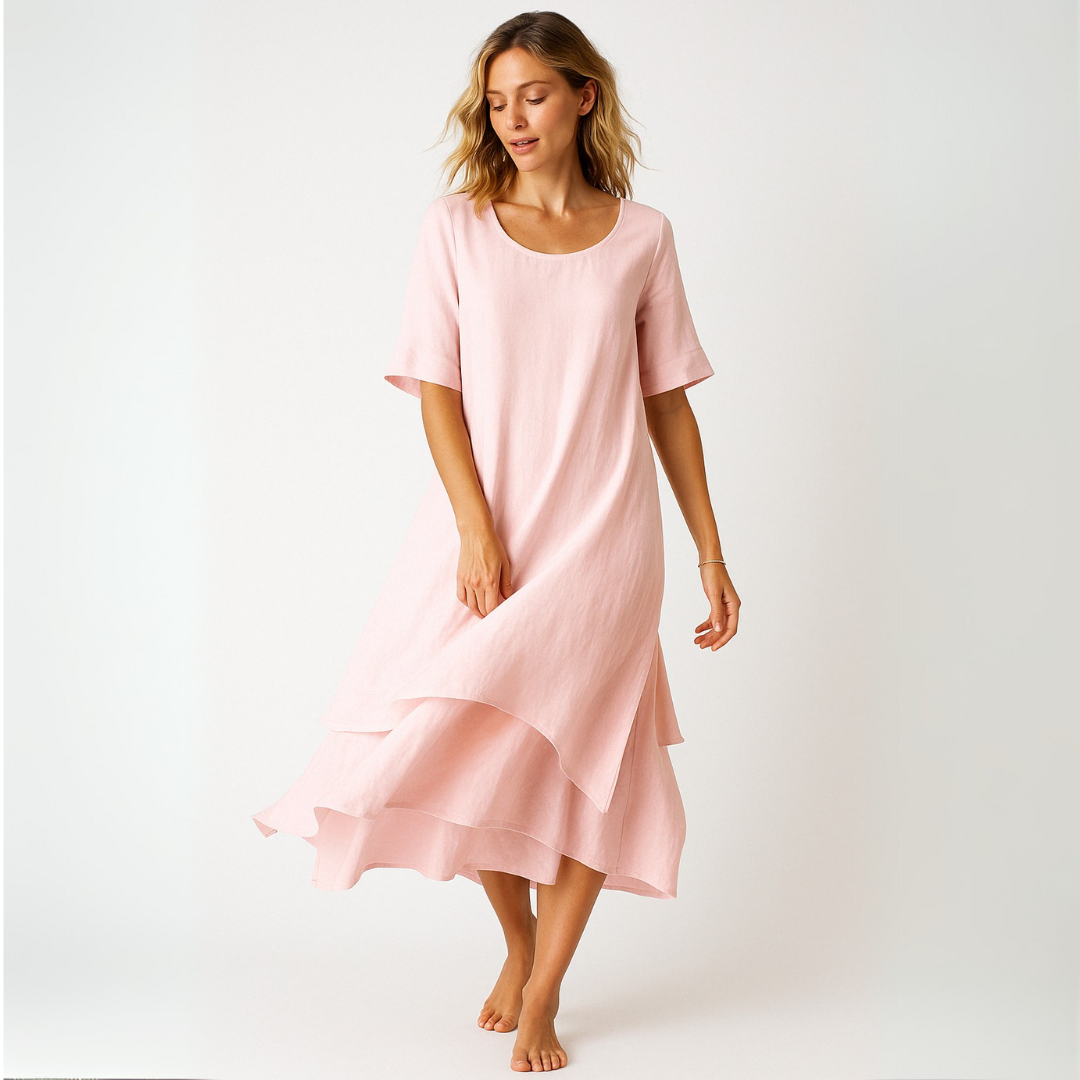 The ELOISE dress is the perfect combination of comfort and elegance, ideal for any occasion. The flowing draped design creates an effortlessly chic silhouette, while the breathable cotton fabric ensures all-day comfort. Whether you opt for a sophisticated or casual look, this dress embodies timeless elegance.