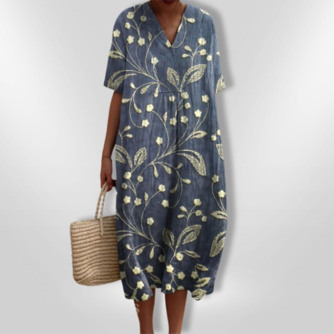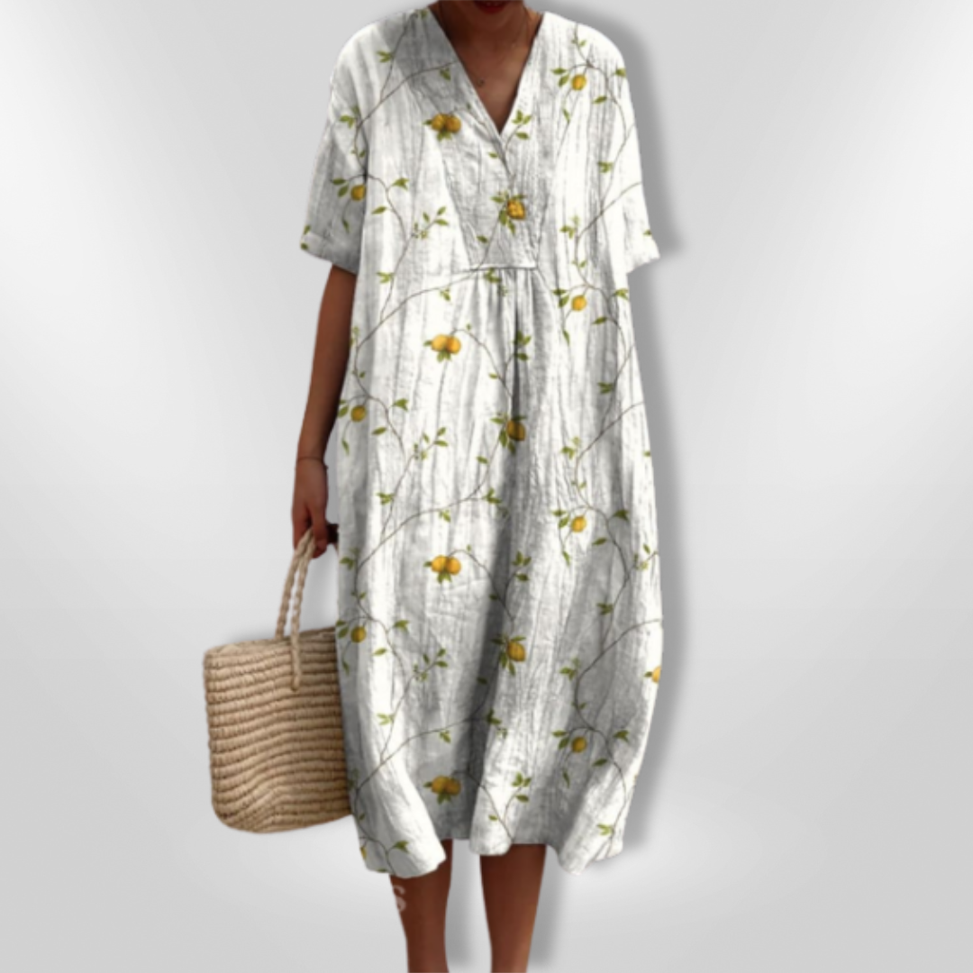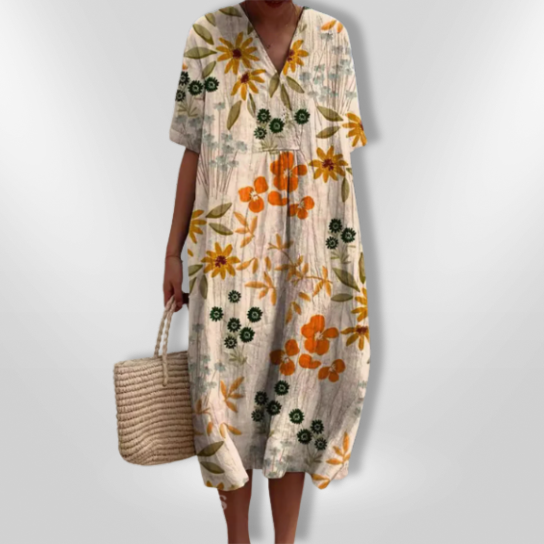 This charming summer dress combines casual style with a vibrant floral print, ideal for sunny days and casual outings. With its loose fit and flowing silhouette, it is both comfortable and elegant. A must-have for your summer wardrobe!