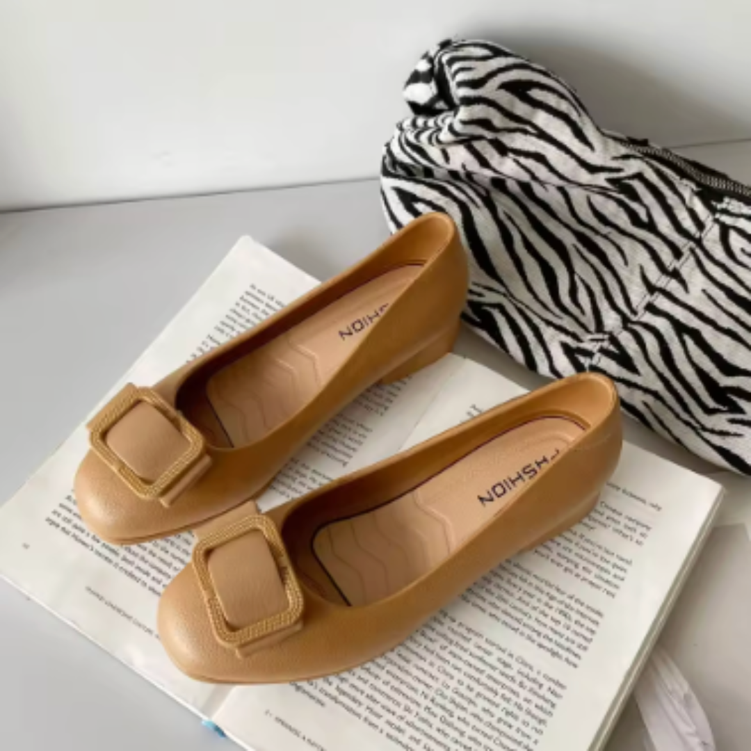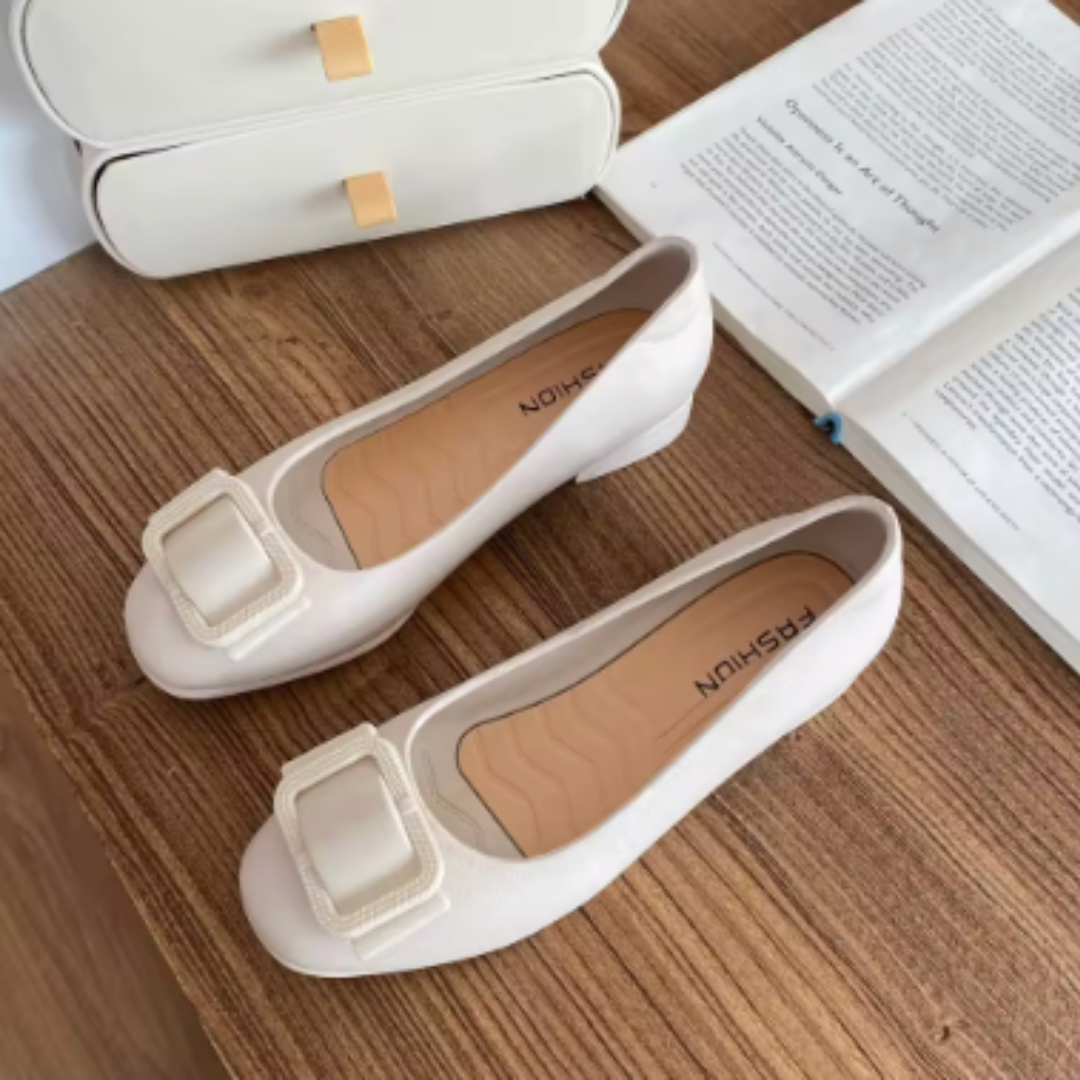 The CELINE Women's Square Toe Leather Flats combine effortless elegance with everyday comfort. Designed with a sleek square toe and a stylish buckle detail, these flats are perfect for both casual and professional wear. Made from high-quality vegan leather, they offer a soft and flexible fit while maintaining a sophisticated look.